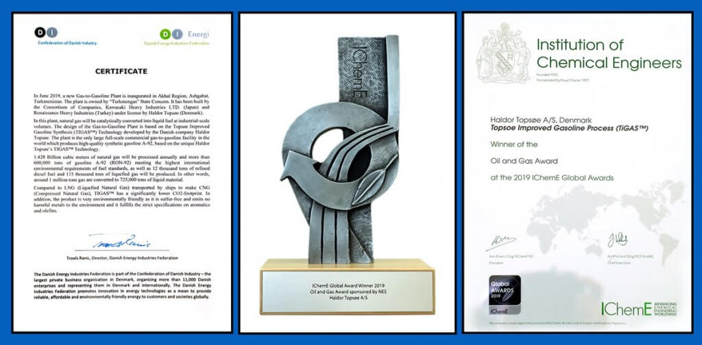 土库曼斯坦奥丹杰佩气制油厂(GTL),建设工程总造价约17美元,建设总承包商为目本川岭重工株式会社和土耳其复兴控股公司等,设计产能为:年加工天然气17.85亿立方米,年产60万吨符合欧5环保标准的 RON-92号汽油、1.2万吨柴油、11.5万吨液化天然气。据称,该厂采用丹麦托营索公司气制油工艺,配有日本、美国、英国、法国、荷兰、瑞典、韩国等国的大公司的现代化一流设备。土库曼斯坦丹杰佩气制油厂(GTL),是"气制油"技术首次在实践中实现商化生产,该厂建成投产时,日本首相安倍晋三专门给土库曼斯坦总统尔德穆哈梅多夫写信祝贺。
